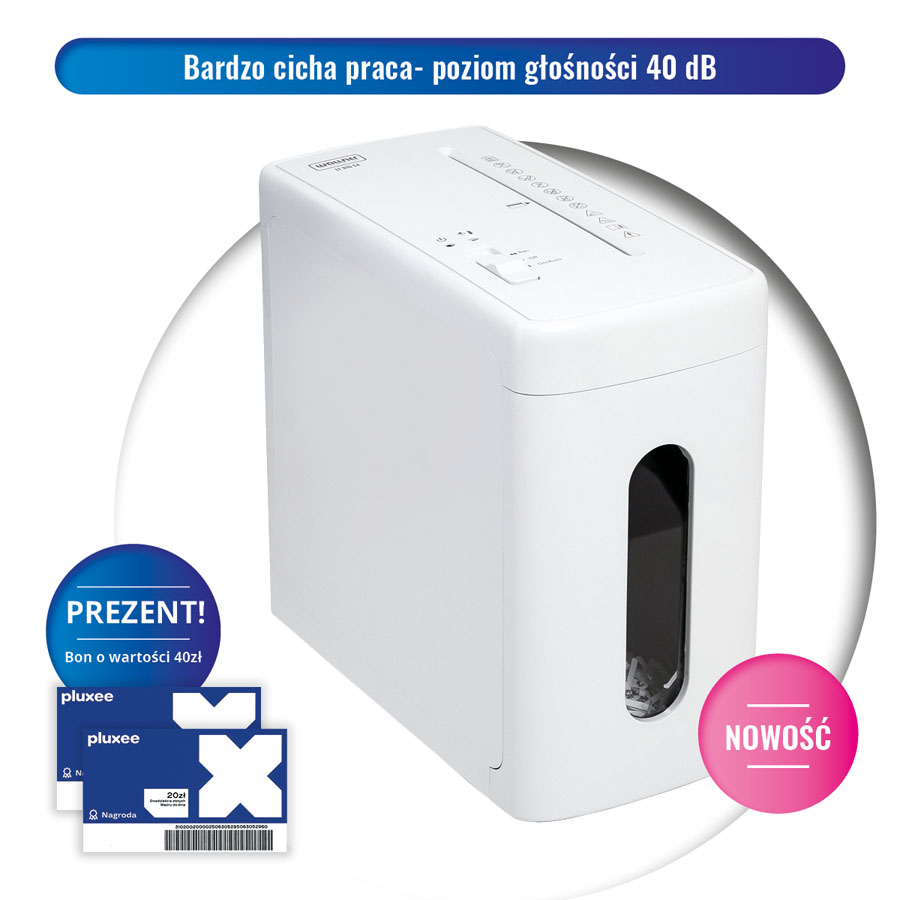 niszczy 17 kartek (ścinki 3,5 x 40 mm), poziom bezpieczeństwa DIN: P-4/O-3/T-4/E-3/F-1 (36K493X)