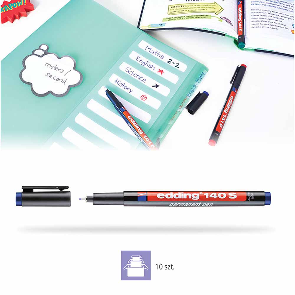 Foliopis edding 143 B posiada szybkoschnący tusz, co minimalizuje ryzyko rozmazywania i zapewnia czystość pracy nawet przy intensywnym użytkowaniu.
