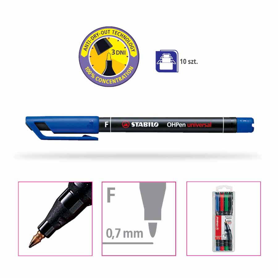 Niezmywalny tusz foliopisu edding 143 B charakteryzuje się wysoką odpornością na światło i wodę, co zapewnia intensywne i trwałe kolory oraz wyraźne kontury. Idealny do długotrwałych oznaczeń i notatek.