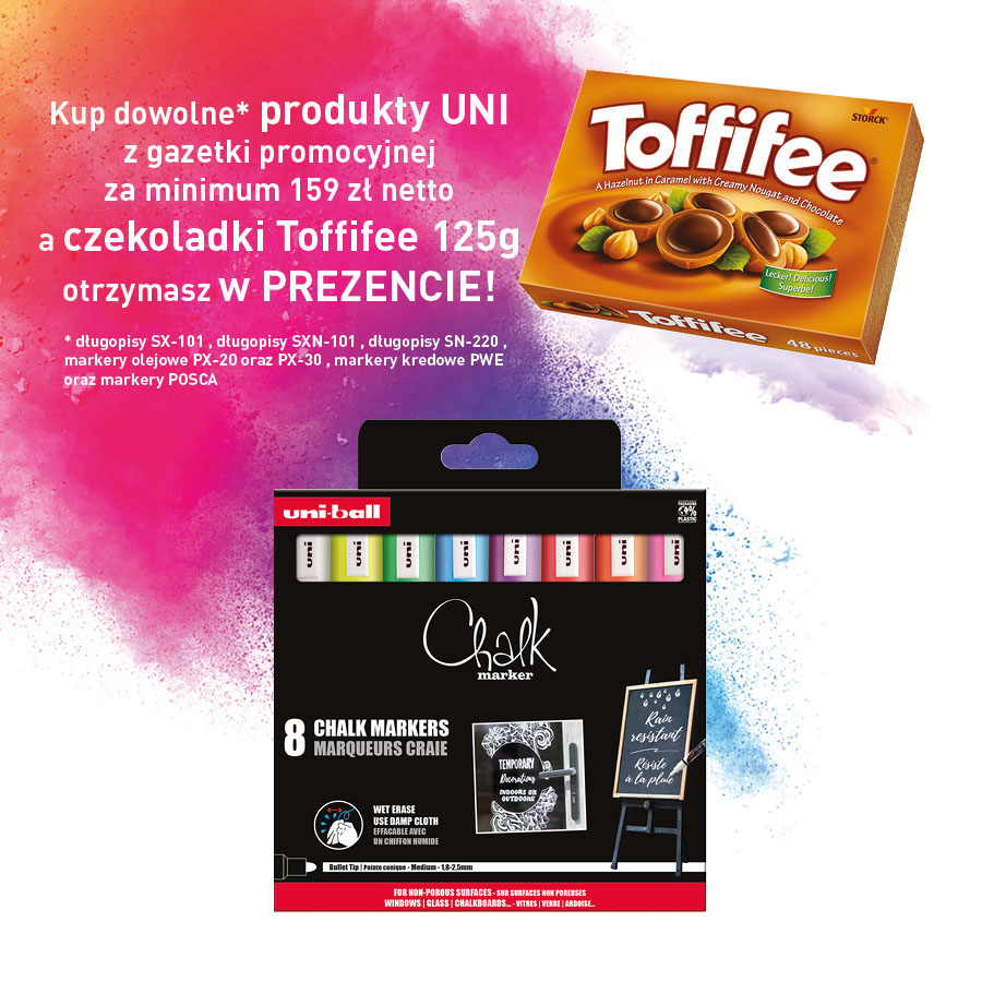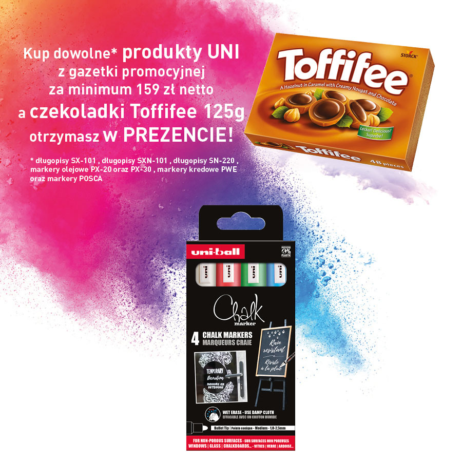Kup dowolne produktu UNI z gazetki promocyjnej za minimum 159 zł netto a czekoladki Toffifee 125g otrzymasz w PREZENCIE !