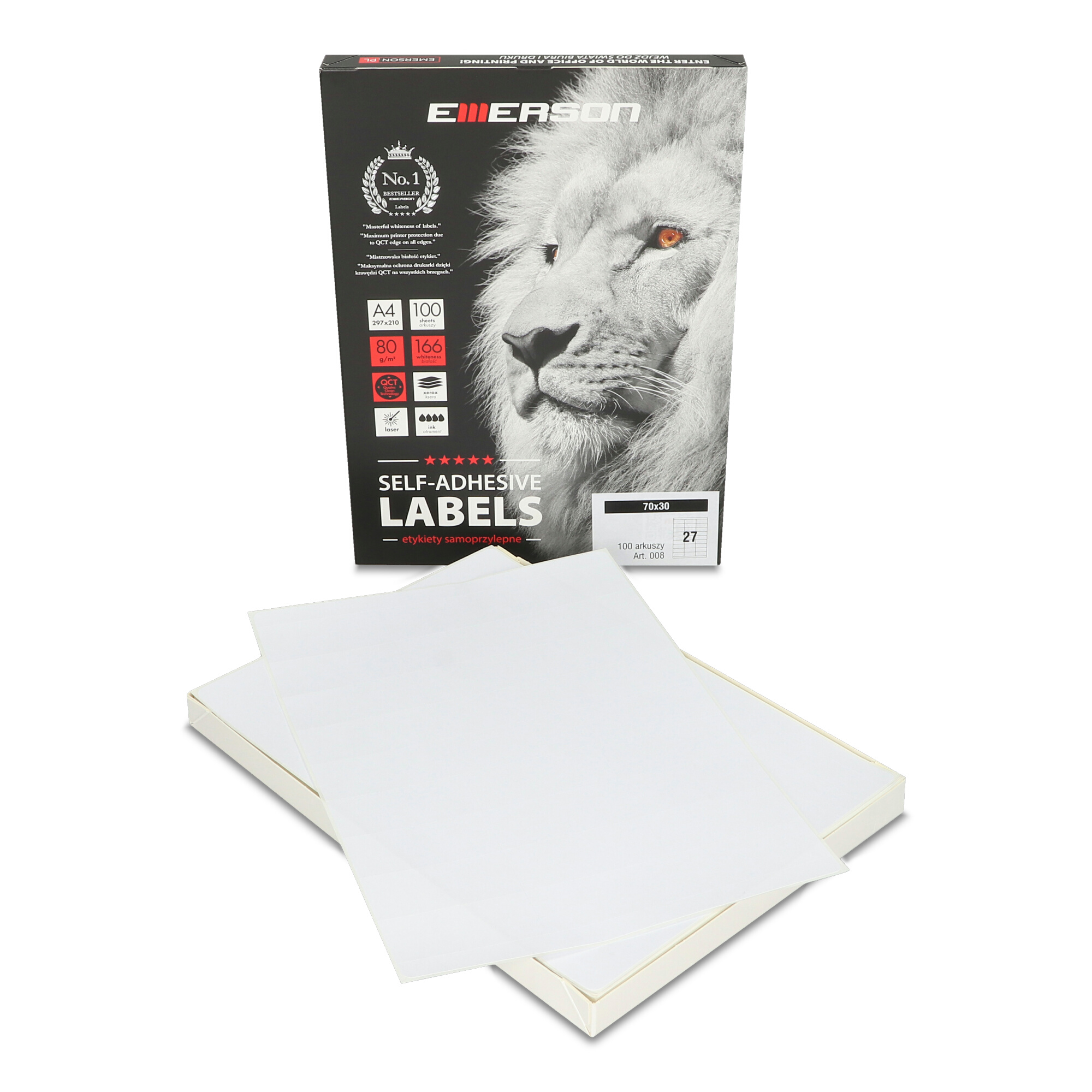 Etykiety samoprzylepne uniwersalne Emerson A4, 100 ark.
