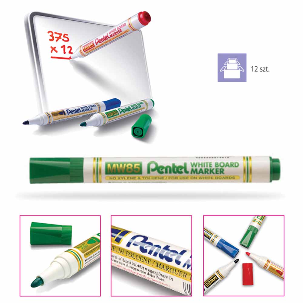Wyraźne kolory tuszu i łatwość ścierania sprawiają, że markery Pentel MWL5M Maxiflo są idealnym narzędziem do codziennego użytku na tablicach suchościeralnych. Niezależnie od koloru, tusz zawsze wygląda intensywnie i jest łatwy do usunięcia.