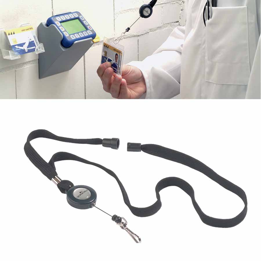 Mechanizm ściągający Durable oferuje długość około 80 cm po rozciągnięciu, co zapewnia swobodny dostęp do identyfikatora bez konieczności jego zdejmowania. To wygodne rozwiązanie sprawia, że Twój identyfikator jest zawsze pod ręką, gotowy do użycia w każdej chwili, co jest niezwykle przydatne w dynamicznym środowisku pracy.