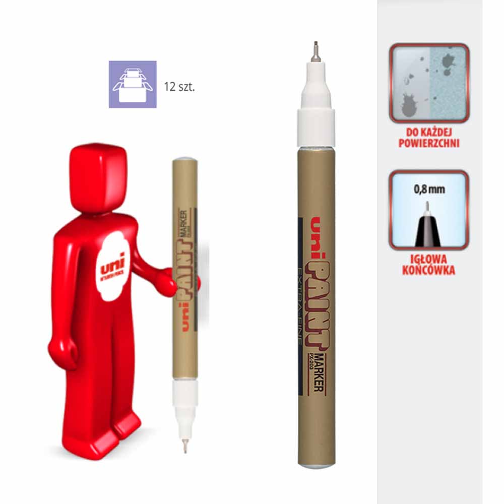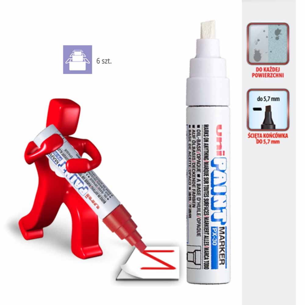 Marker wyposażony jest w okrągłą fibrową końcówkę, która zapewnia równomierne i precyzyjne oznaczenia. Końcówka pompująca pozwala na płynne pisanie, eliminując przerwy w pracy i gwarantując komfort użytkowania.