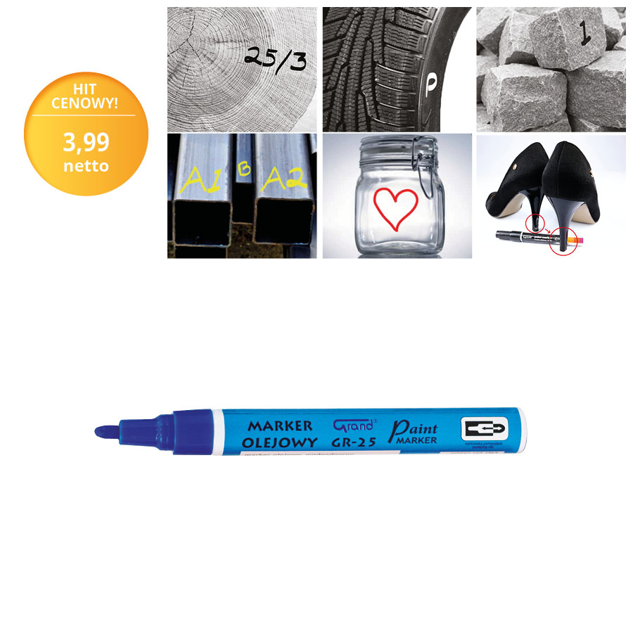 Marker olejowy GRAND GR-25, w kolorze niebieskim, to narzędzie, które zapewnia trwałe oznaczenia na każdej powierzchni. Dzięki wodoodpornemu i szybkoschnącemu tuszowi, Twoje oznaczenia będą wyraźne i odporne na działanie wody.