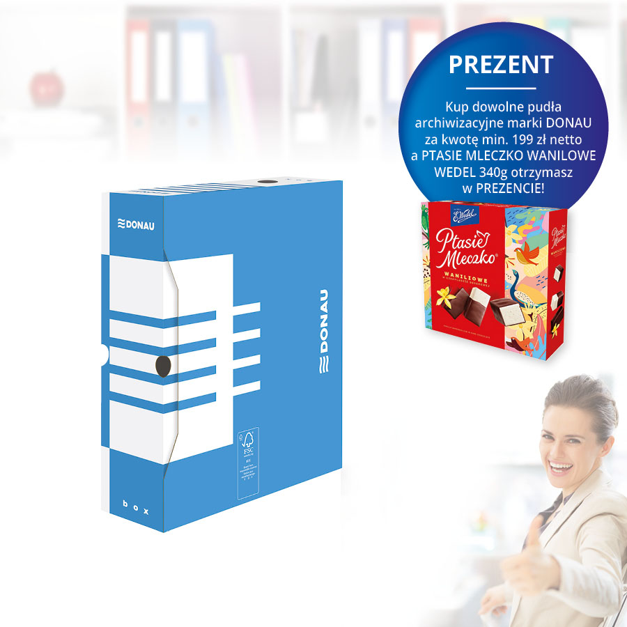 jm.: szt Kup dowolne pudła archiwizacyjne marki DONAU za kwotę min. 199 zł netto a PTASIE MLECZKO WANILOWE WEDEL 340g otrzymasz w PREZENCIE !