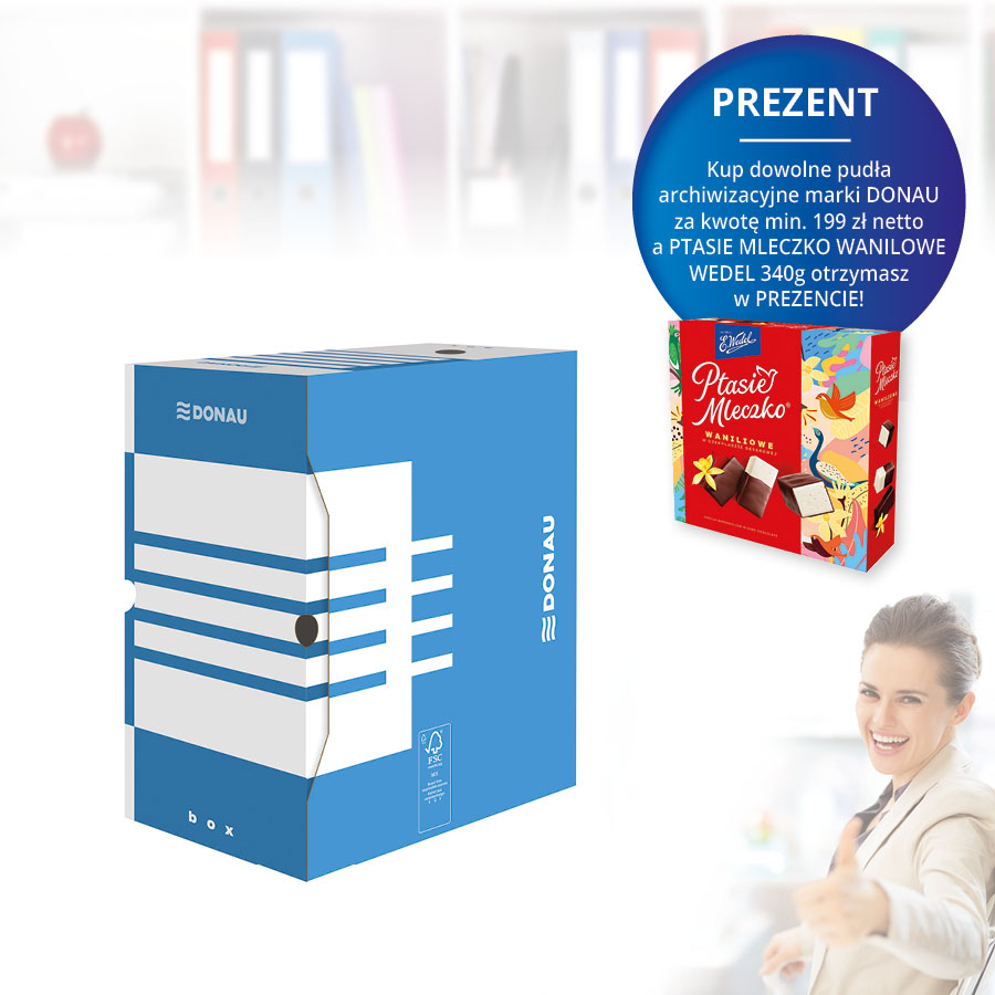 jm.: szt Kup dowolne pudła archiwizacyjne marki DONAU za kwotę min. 199 zł netto a PTASIE MLECZKO WANILOWE WEDEL 340g otrzymasz w PREZENCIE !