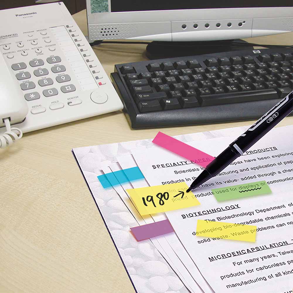 Zakładki indeksujące Stickn to idealne narzędzie do organizacji i podkreślania ważnych informacji w dokumentach, notatkach czy książkach. Zestaw zawiera 5 kolorów neonowych, po 25 zakładek z każdego koloru, co zapewnia aż 125 zakładek o wymiarach 12x45 mm. Te wielokrotnego użytku zakładki są idealne do szybkiego zaznaczania i łatwego odnajdywania ważnych informacji.