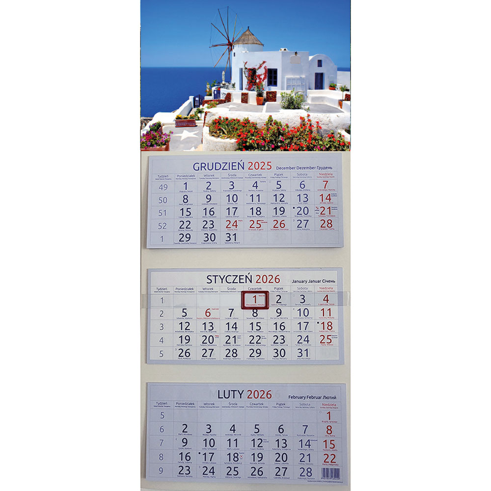 - na każdej kartce skrócone kalendarium na rok 2026 i 2027