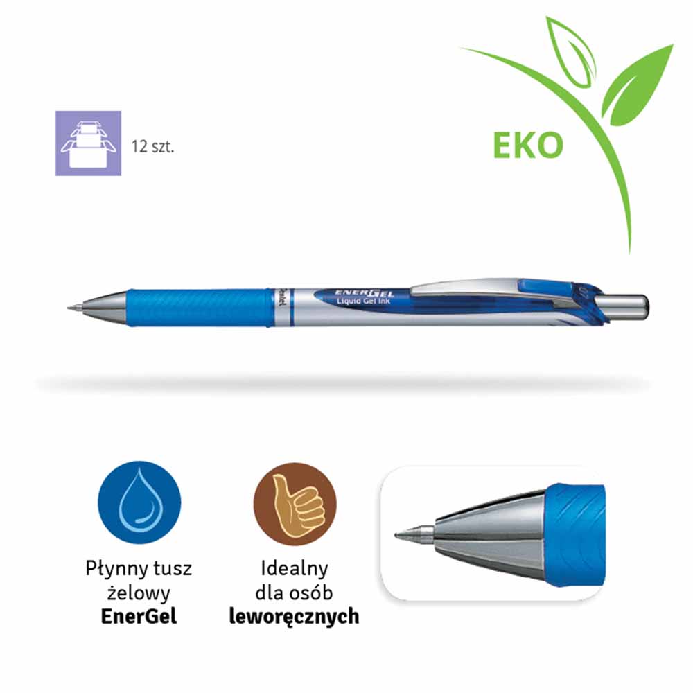 Pentel EnerGel BL 407 wyposażone jest w wkład w kolorze niebieskim, co zapewnia czytelność i estetykę pisma. Dodatkowo, pióro jest pakowane w eleganckie etui, co dodaje mu prestiżu i sprawia, że jest gotowe do wręczenia jako prezent.