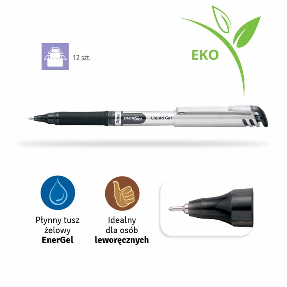 Pióro wyposażone jest w płynny tusz ENERGEL, który zapewnia lekkość i gładkość pisania. Tusz ten nie rozmazuje się, szybko wysycha i nie blaknie, co gwarantuje doskonałą jakość pisania na długi czas.