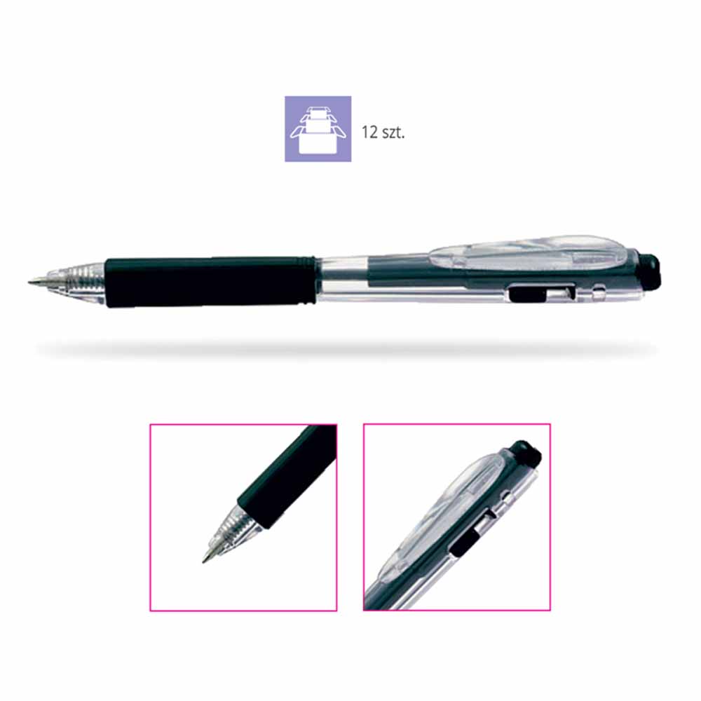 Długopis automatyczny Pentel BX467 wyposażony jest w wygodny system przyciskowy, który ułatwia szybkie i płynne użycie. Metalowy klip dodaje elegancji i funkcjonalności, umożliwiając łatwe przypięcie długopisu do notesu, kieszeni lub teczki.