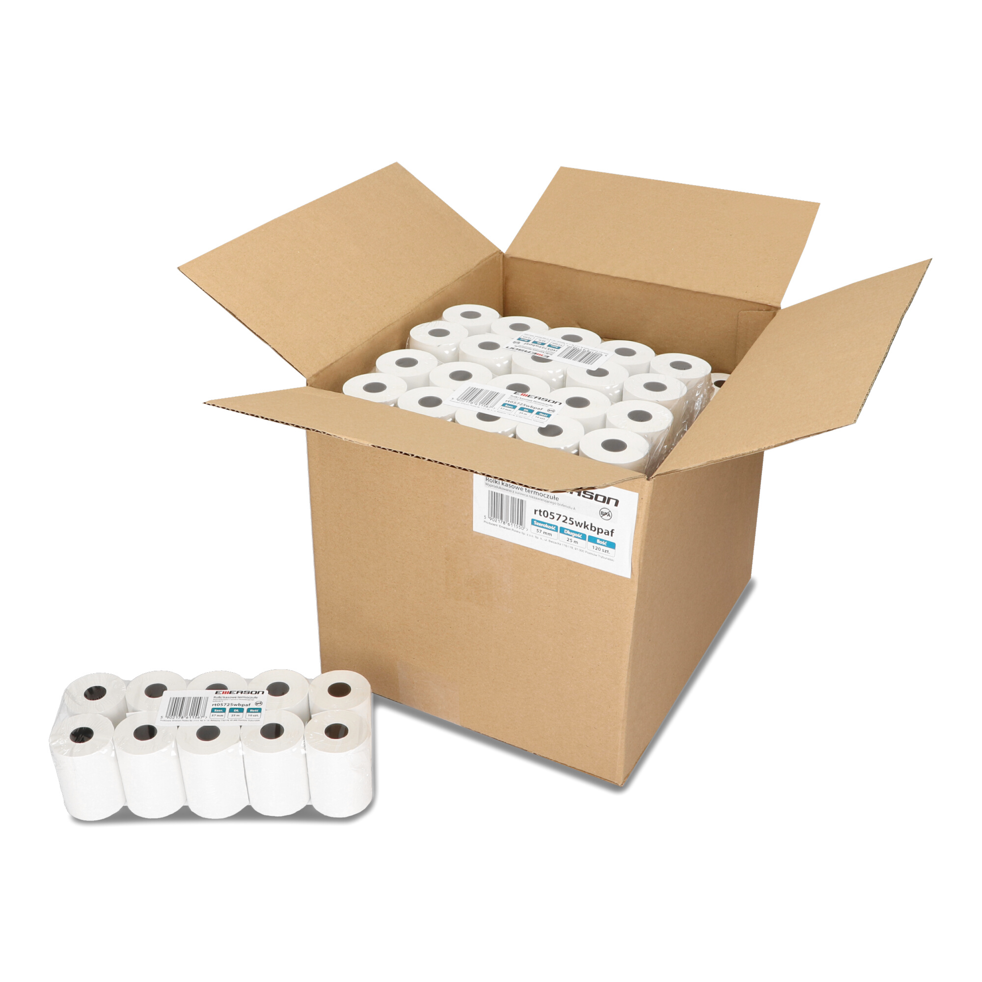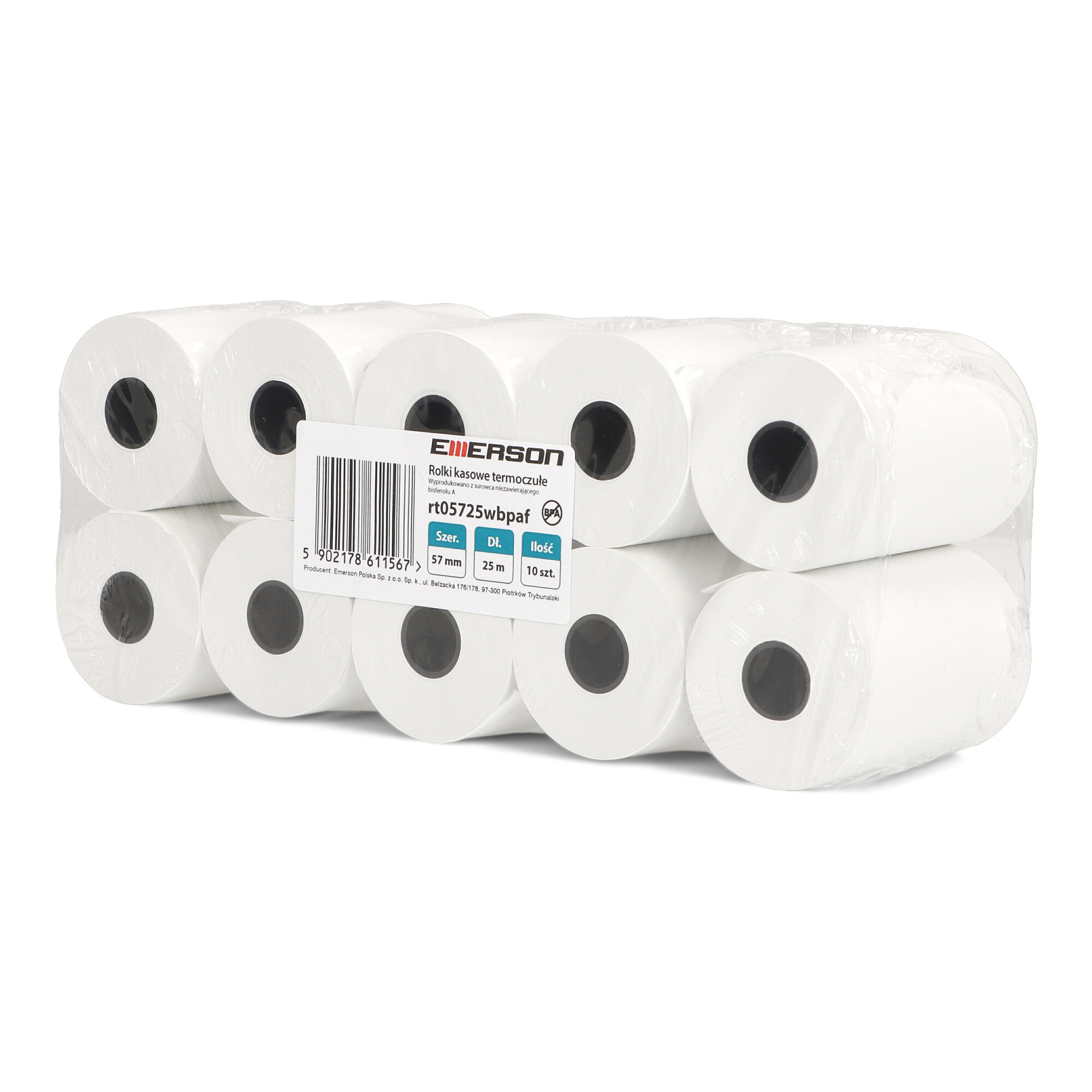 Rolki termiczne Emerson BPA FREE 57mm x 25m to idealne rozwiązanie dla wszystkich, którzy poszukują najwyższej jakości i bezpieczeństwa w codziennym użytkowaniu. Opakowanie zawiera 10 sztuk rolek, które doskonale sprawdzą się zarówno w kasach fiskalnych, jak i terminalach płatniczych.