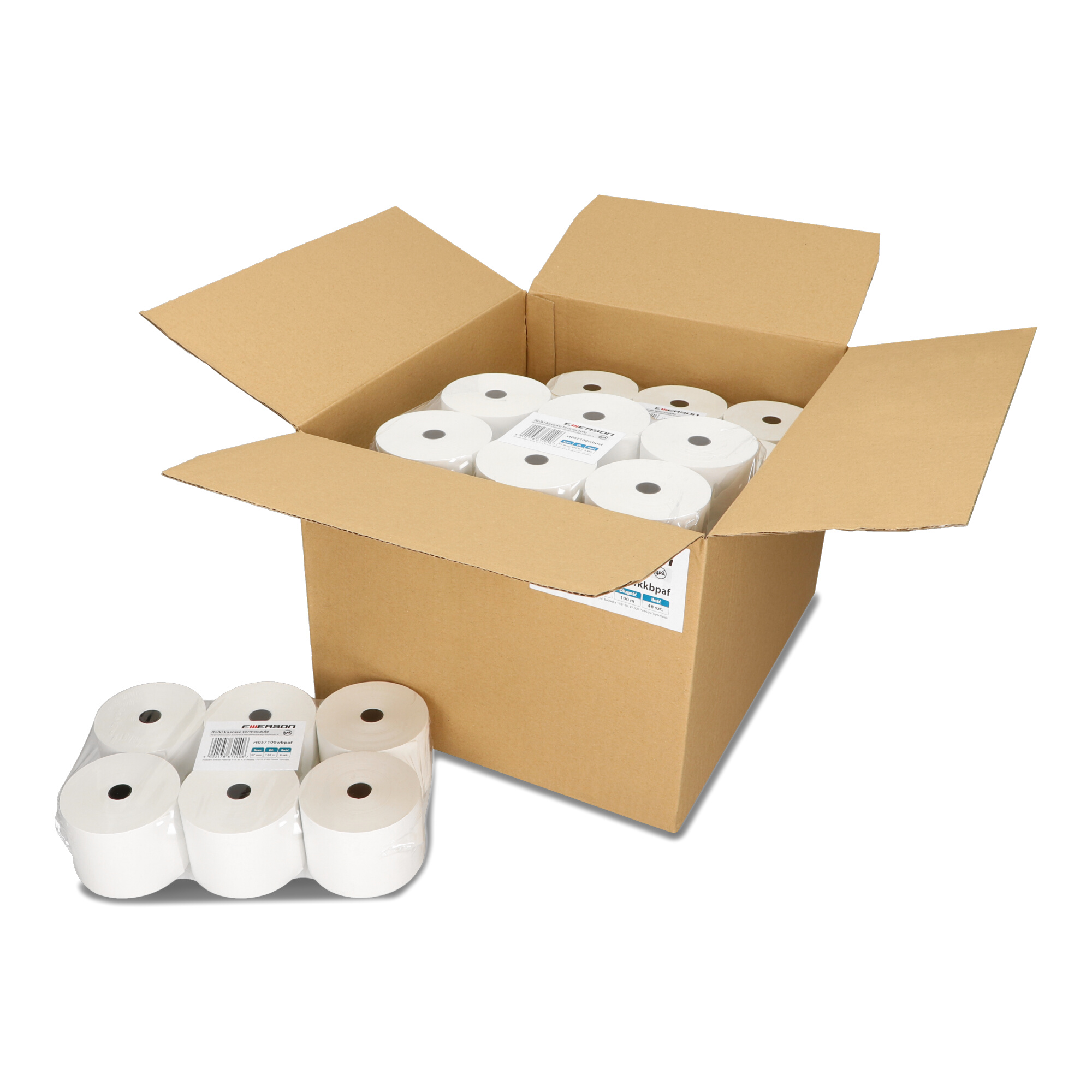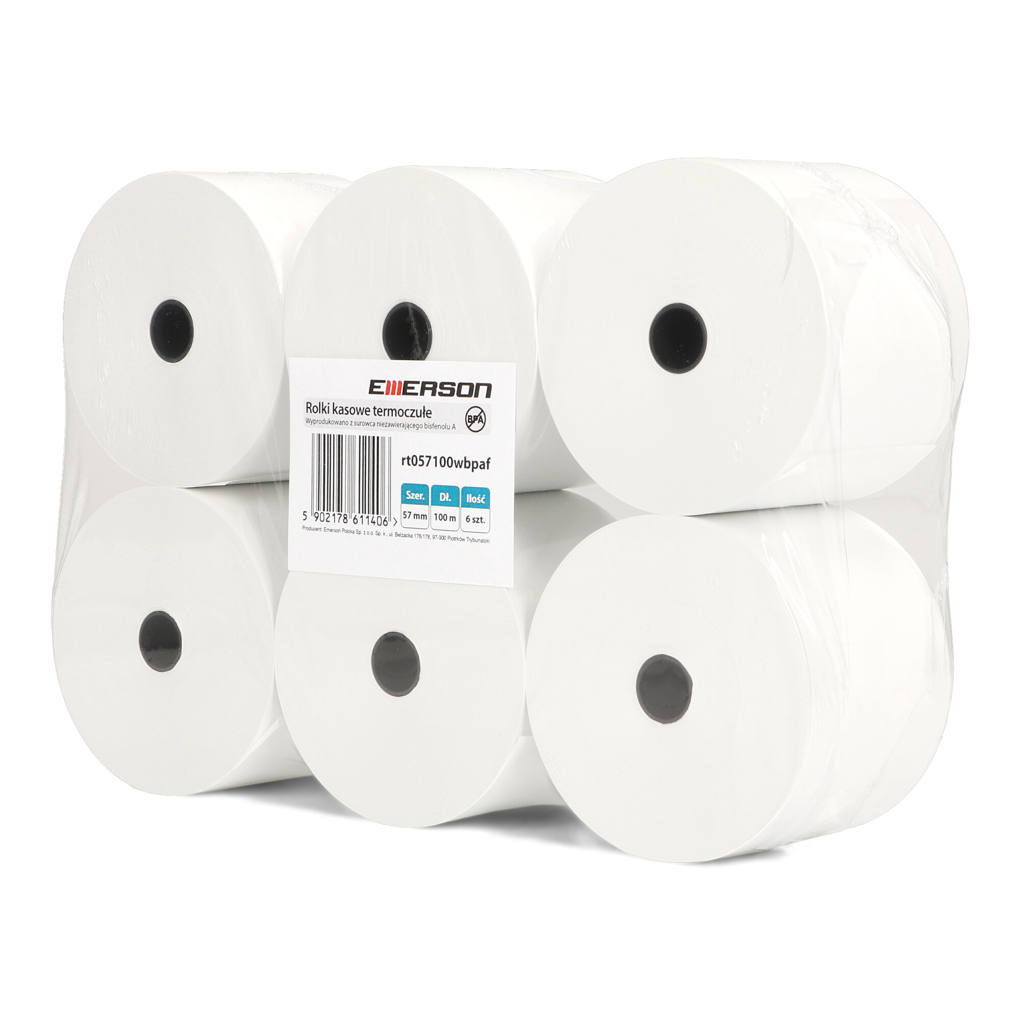 Rolki termiczne Emerson BPA FREE 57mm x 100m to idealne rozwiązanie dla wszystkich, którzy poszukują najwyższej jakości i bezpieczeństwa w codziennym użytkowaniu. Opakowanie zawiera 6 sztuk rolek, które doskonale sprawdzą się zarówno w kasach fiskalnych, jak i terminalach płatniczych.