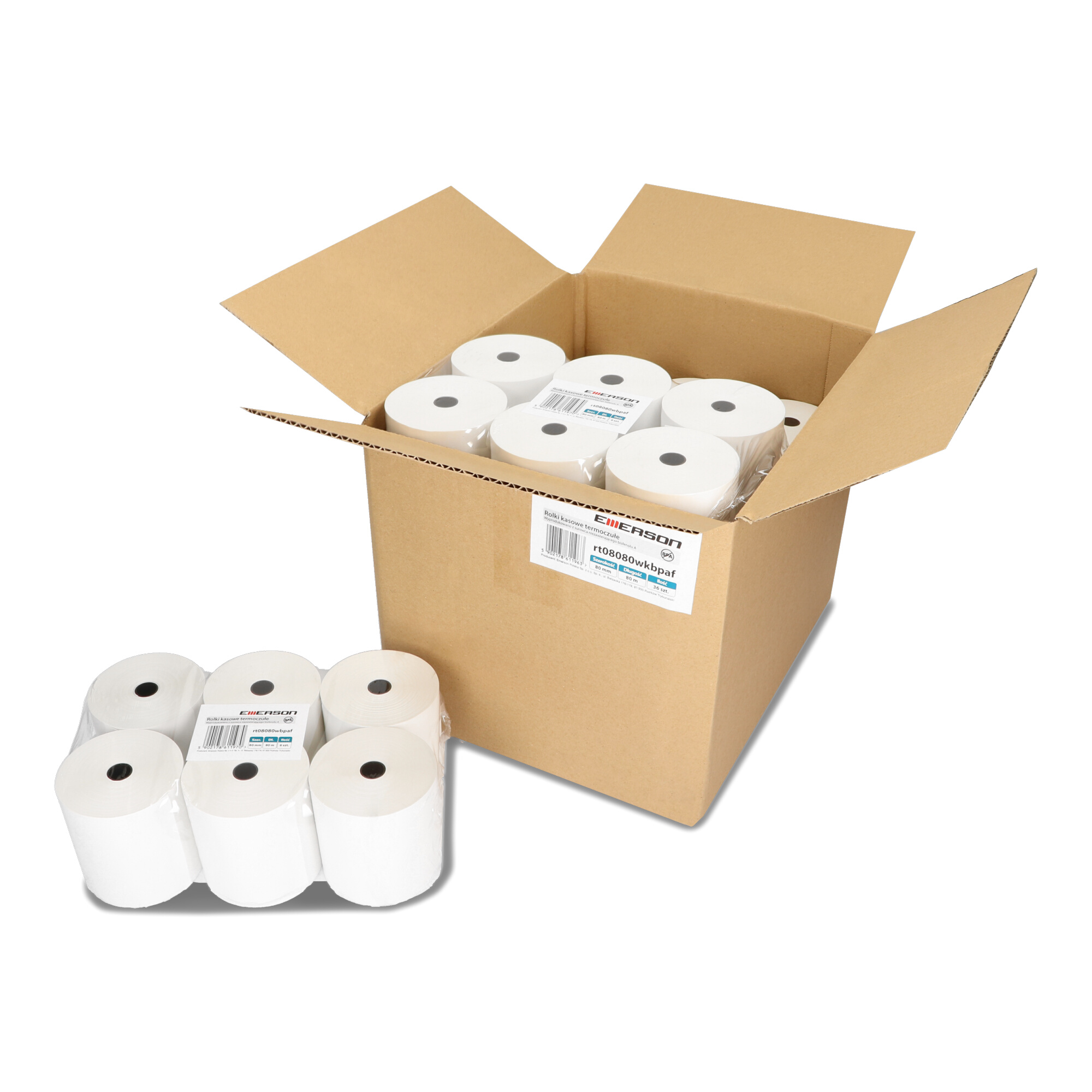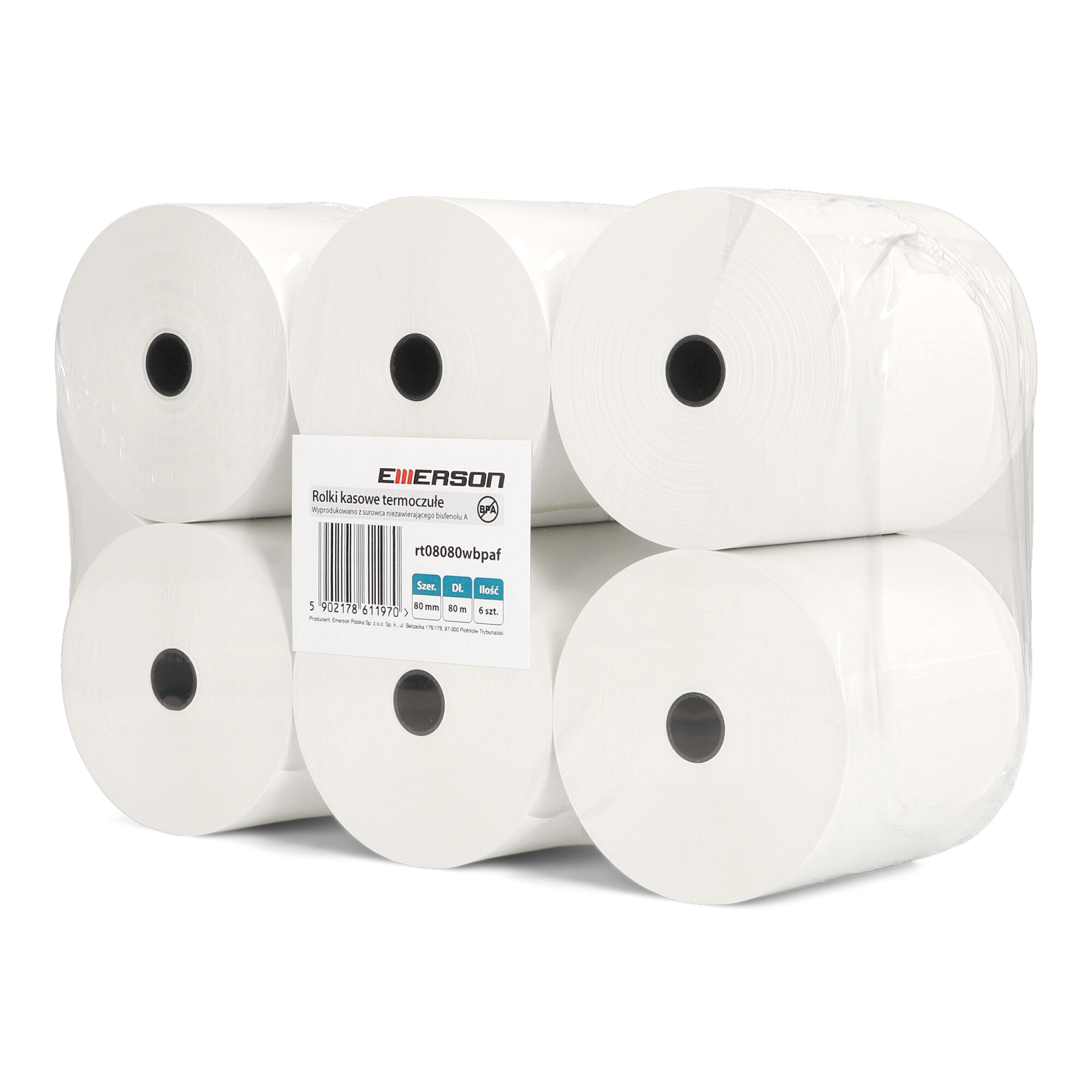 Rolki termiczne Emerson BPA FREE 80mm x 80m to idealne rozwiązanie dla wszystkich, którzy poszukują najwyższej jakości i bezpieczeństwa w codziennym użytkowaniu. Opakowanie zawiera 6 sztuk rolek, które doskonale sprawdzą się zarówno w kasach fiskalnych, jak i terminalach płatniczych. Rolki te są wykonane z papieru termoczułego o gramaturze 50g (± 6g), co zapewnia niezawodność i trwałość wydruków. Produkt jest całkowicie wolny od szkodliwego Bisfenolu-A, dzięki czemu jest bezpieczny dla użytkowników i przyjazny dla środowiska. Dzięki gwarancji trwałości wydruku do 7 lat przy odpowiednich warunkach przechowywania, możesz być pewien, że Twoje dokumenty będą czytelne przez długi czas. To doskonałe rozwiązanie dla miejsc, gdzie przechowywanie paragonów i innych dokumentów jest kluczowe. Pakowanie rolek w folię termokurczliwą zapewnia dodatkową ochronę, a także estetyczny wygląd produktu. Standardowe nawinięcie na tulejkę o średnicy wewnętrznej 12mm ułatwia ich montaż i wymianę, co zwiększa komfort użytkowania. Te rolki termiczne są wszechstronnym wyborem dla różnych typów przedsiębiorstw i miejsc publicznych. Idealnie nadają się do użytku w: Kasach fiskalnych: Gwarantują niezawodne wydruki paragonów, które są czytelne i trwałe. Terminalach płatniczych: Zapewniają profesjonalne i estetyczne potwierdzenia transakcji. Bankomatach: Doskonałe do wydruku wyciągów i potwierdzeń. Telefaksach: Idealne do przesyłania dokumentów w wysokiej jakości. Kalkulatorach biurowych: Świetnie sprawdzają się w codziennych obliczeniach i wydrukach. Niezależnie od tego, czy potrzebujesz ich do domu, biura, sklepu, restauracji, czy hotelu, te rolki termiczne z pewnością spełnią Twoje oczekiwania, zapewniając niezawodne i profesjonalne wydruki. Rolki termiczne Emerson BPA FREE 80mm to synonim najwyższej jakości, bezpieczeństwa i ekologii. Dzięki ich wyjątkowym właściwościom, możesz cieszyć się niezawodnymi wydrukami, które są bezpieczne dla Ciebie i dla środowiska. Wybierając rolki Emerson, inwestujesz w produkt, który zapewnia komfort pracy i długotrwałą satysfakcję.