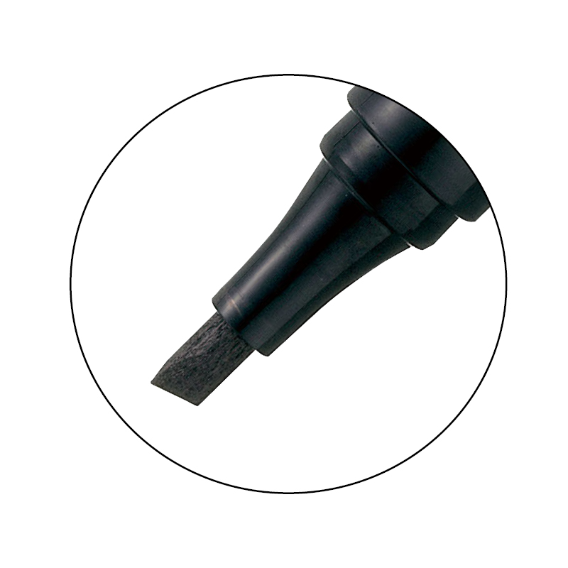 Marker Pentel N860 jest wyposażony w ściętą końcówkę z włókna akrylowego, która zapewnia wyraźne i zróżnicowane pisanie. Grubość linii pisania wynosi od 1,2 do 4,5 mm, co pozwala na tworzenie zarówno cienkich, jak i grubych oznaczeń.
