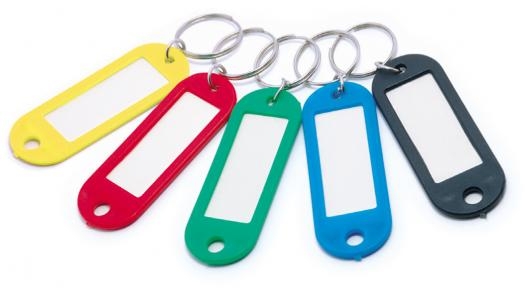 - w komplecie z kolorowymi zawieszkami na klucze