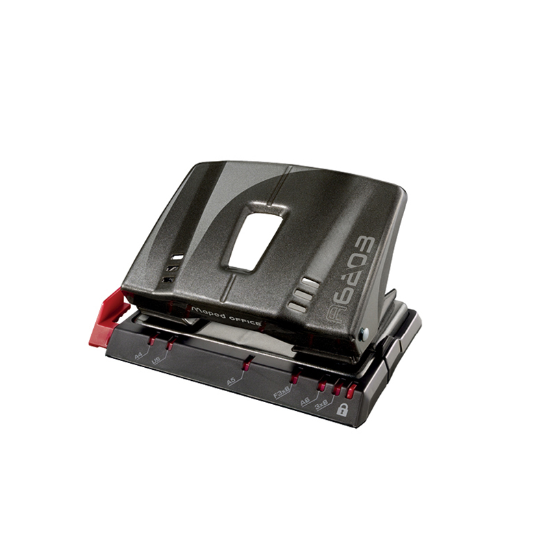 Metalowa konstrukcja, gumowy uchwyt zapewniające komfort trzymania, pojemnik na ścinki, prowadnica ułatwiająca wsuwanie papieru, dziurkuje do 8 kartek, średnica dziurki 6 mm, gwarancja 3 lata