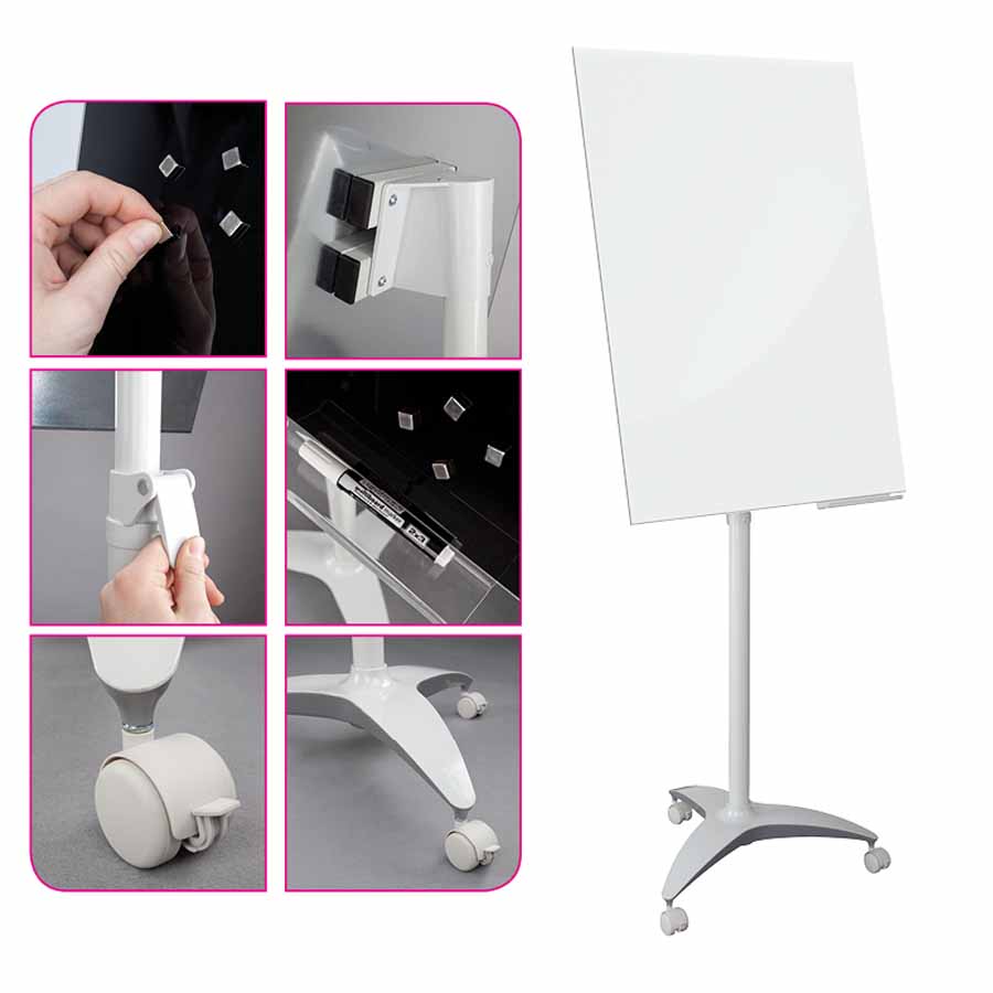 flipchart mobilny z tablicą o powierzchni suchościeralno-magnetycznej